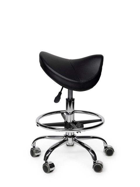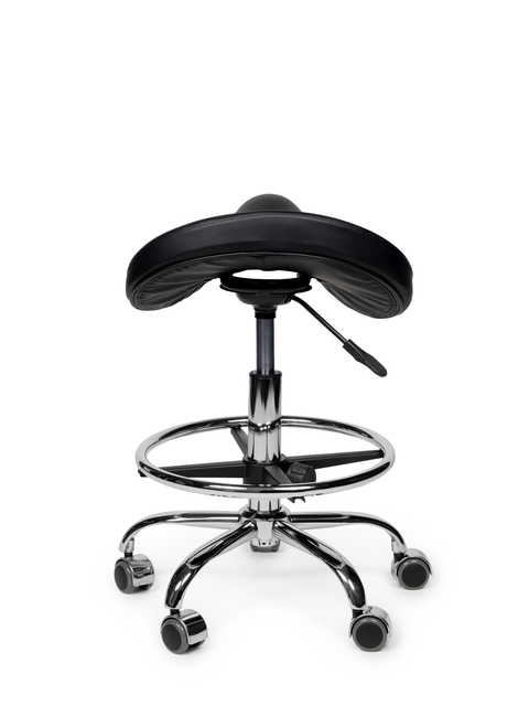 Zadelkruk Office Premium laag met voetring harde wielen zw